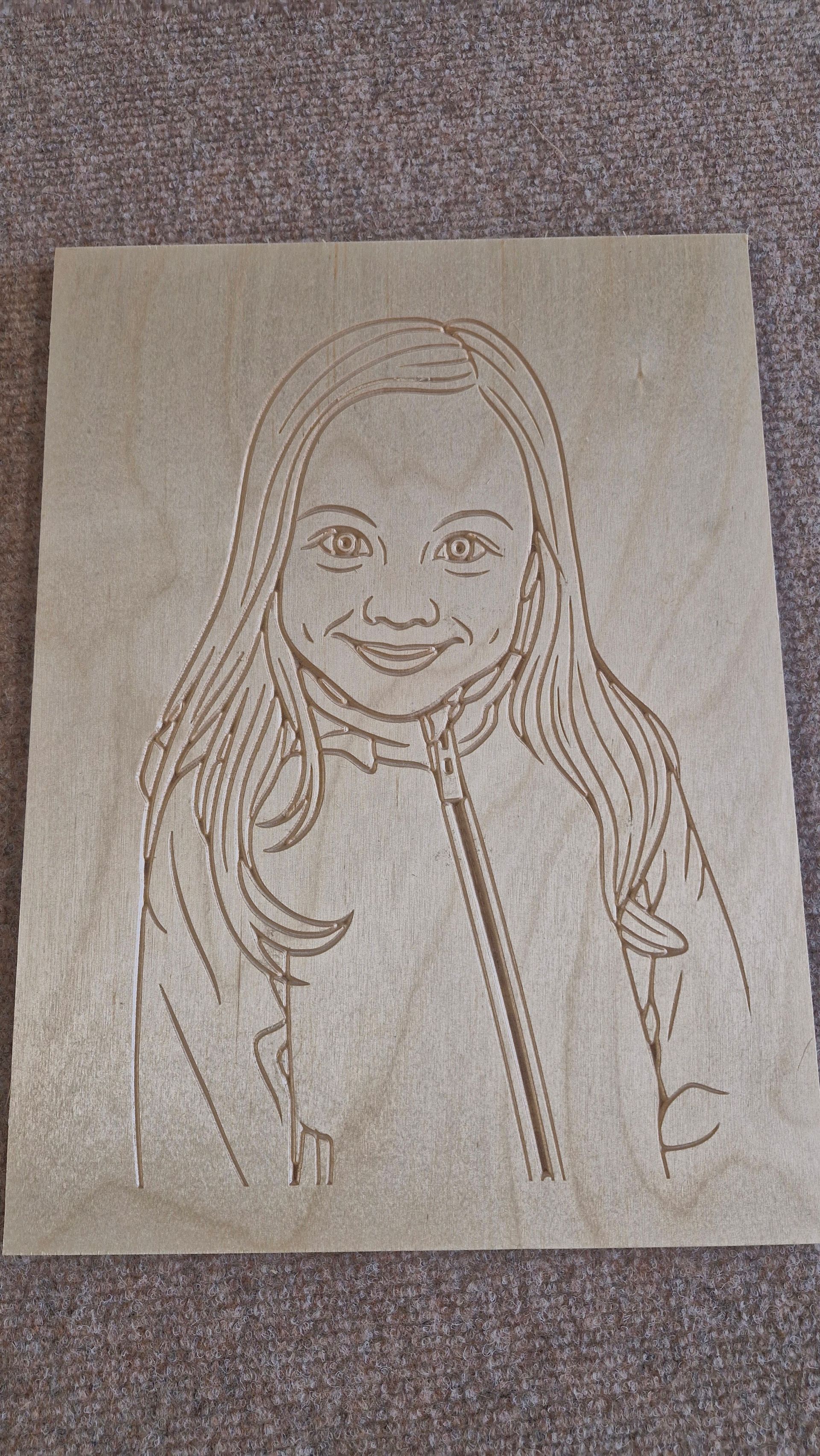 Kaunispuulta saat erilaiset laserkaiverretut tuotteet toiveidesi mukaan. Voimme toteuttaa esimerkiksi laserkaiverruksen valokuvasta mustaviivapiirroskorttina tai -tauluna.