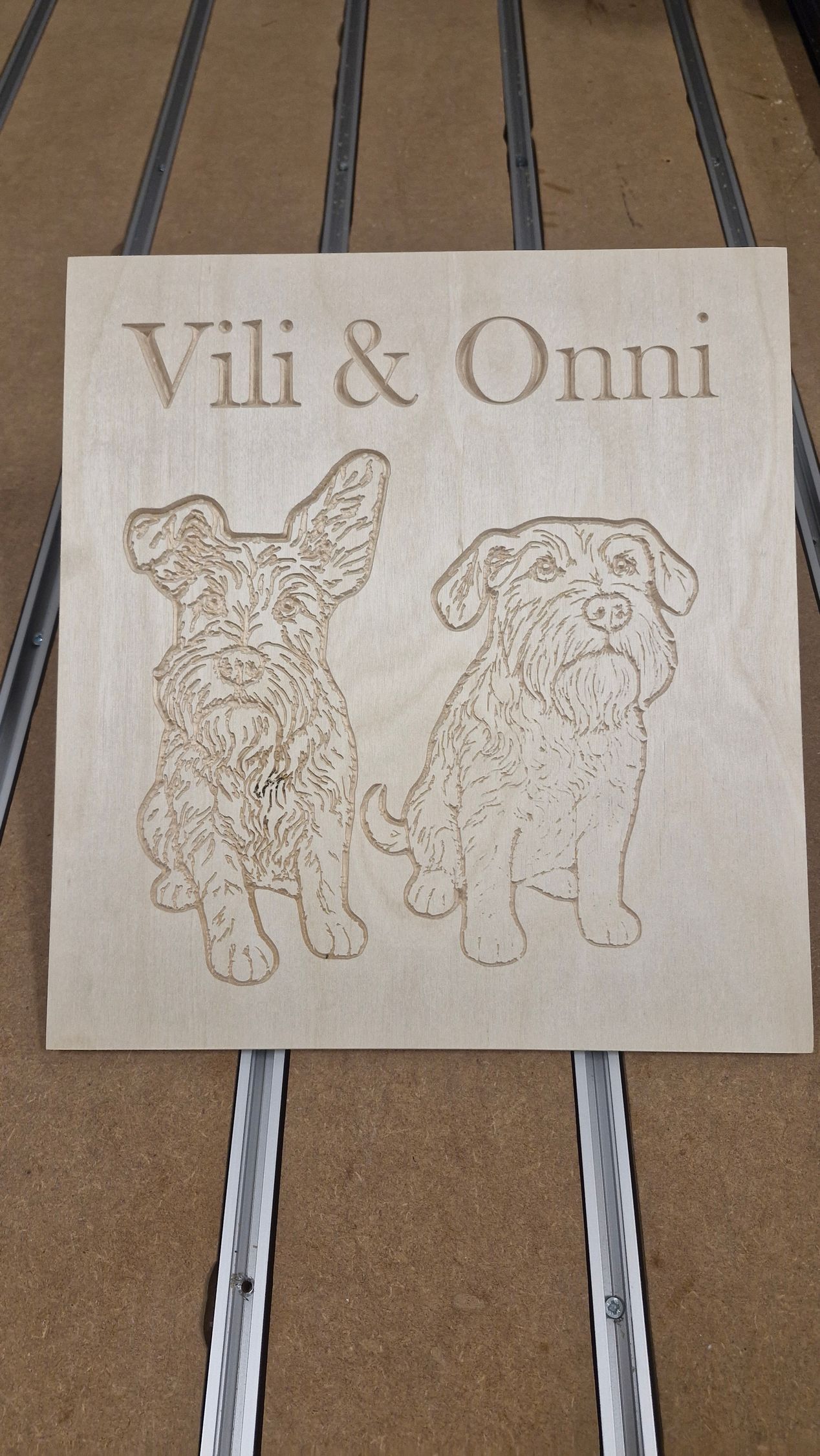 CNC-koneella kaiverretut puutaulut lemmikeistä, perheestä, harrastuksista yms. toiveidesi mukaan.